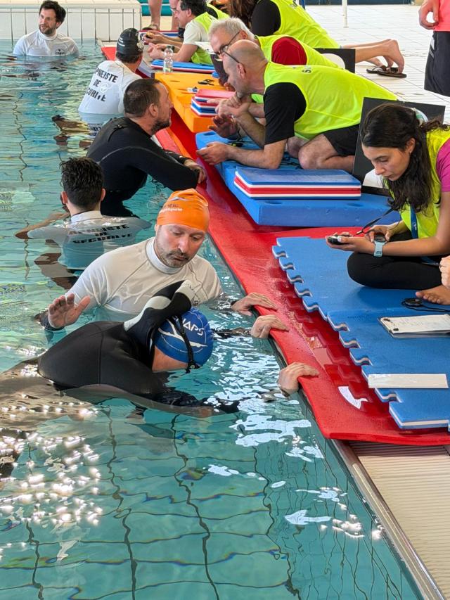 Les Enapsiens ont brillé non seulement en tant que compétiteurs mais aussi comme juges et apnéistes de sécurité. Courageux, ils sont arrivés la veille pour les formations d’apnéiste de sécurité et de Juge.